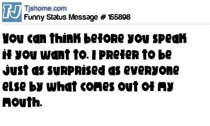- # 98283 I don't like to think before I speak. I like to be just as surprised as everyone else by what comes out of my mouth.