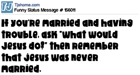 - # 163705 If you are thinking about getting married but are unsure, ask yourself "What would Jesus do?" Then remember that Jesus was never married.