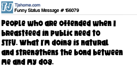X says People who are offended when I breastfeed in public need to STFU. What I'm doing is natural and strengthens the bond between me and my dog.