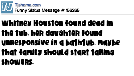 X says Whitney Houston found dead in the tub, her daughter found unresponsive in a bathtub, maybe that family should start taking showers.