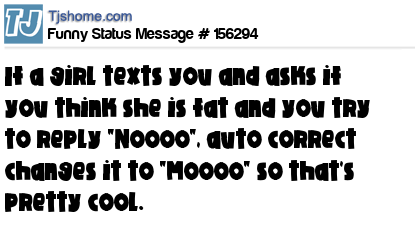 X says If a girl texts you and asks if you think she is fat and you try to reply "Noooo", auto correct changes it to "Moooo" so that's pretty cool.