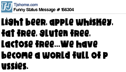X Light beer, apple whiskey, fat free, gluten free, lactose free...We have become a world full of p ussies.
