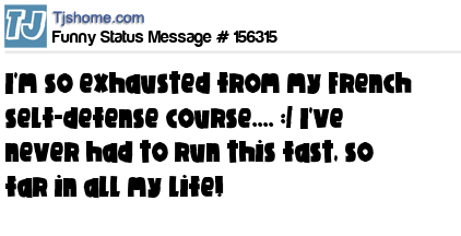 X says I'm so exhausted from my French self-defense course.... :/ I've never had to run this fast, so far in all my life!