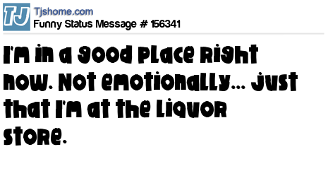 X says I'm in a good place right now. Not emotionally... just that I'm at the liquor store.