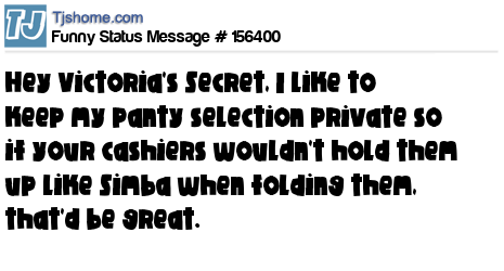 X says Hey Victoria's Secret, I like to keep my panty selection private so if your cashiers wouldn't hold them up like Simba when folding them, that'd be great.
