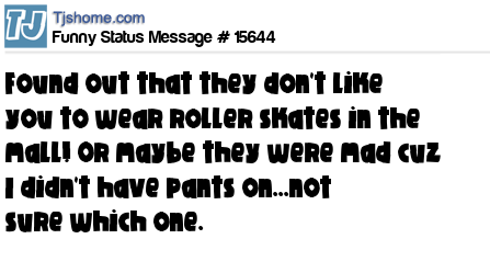 - # 125711 Well, today I found out that they don't like you to wear roller skates in the mall! Or maybe they were mad cuz I didn't have pants on.....not sure which one.