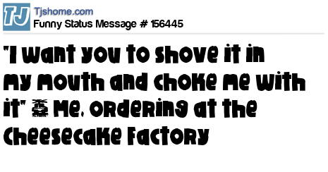 X says "I want you to shove it in my mouth and choke me with it" ~ Me, ordering at the Cheesecake Factory