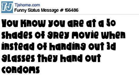X says You know you are at a 50 shades of grey movie when instead of handing out 3d glasses they hand out condoms