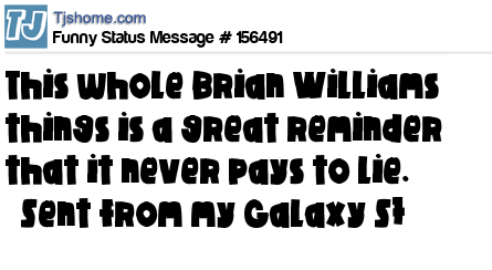 X says This whole Brian Williams things is a great reminder that it never pays to lie. Sent from my Galaxy S7