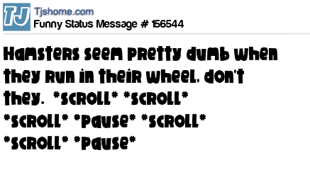 X says Hamsters seem pretty dumb when they run in their wheel, don't they. *scroll* *scroll* *scroll* *pause* *scroll* *scroll* *pause*