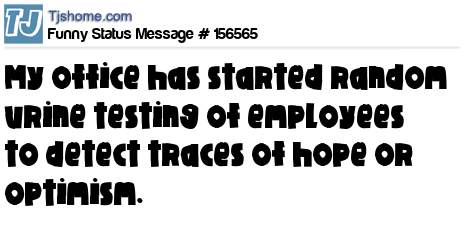 X says My office has started random urine testing of employees to detect traces of hope or optimism.
