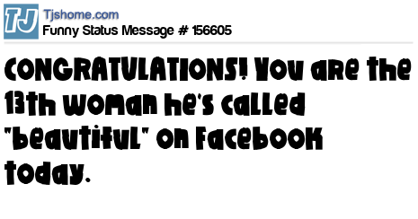 X says CONGRATULATIONS! You are the 13th woman he's called "beautiful" on Facebook today.