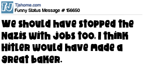X says We should have stopped the Nazis with jobs too, I think Hitler would have made a great baker.
