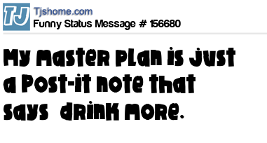 X says My master plan is just a Post-it note that says “drink more.”