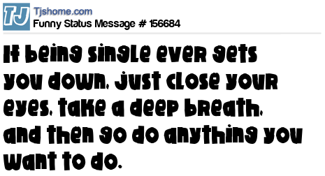 - # 156682 Whenever being single gets me down, I like to close my eyes, take a deep breath and then go do whatever I want pretty much nonstop.