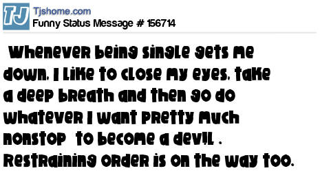 X “Whenever being single gets me down, I like to close my eyes, take a deep breath and then go do whatever I want pretty much nonstop” to become a dev!l . Restraining order is on the way too.