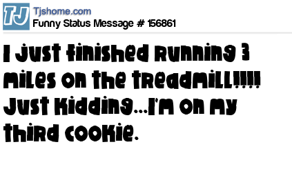 X says I just finished running 3 miles on the treadmill!!!! Just kidding...I'm on my third cookie.