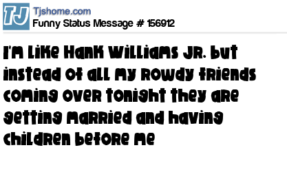 X says I'm like Hank Williams Jr. but instead of all my rowdy friends coming over tonight they are getting married and having children before me