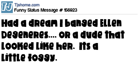 X says Had a dream I banged Ellen Degeneres.... or a dude that looked like her. Its a little foggy.