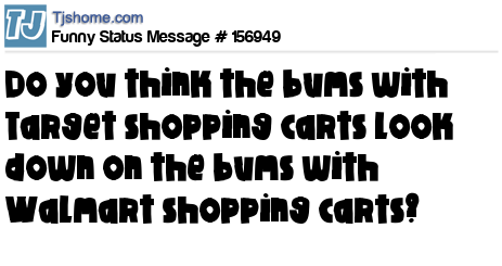 X says Do you think the bums with Target shopping carts look down on the bums with Walmart shopping carts?