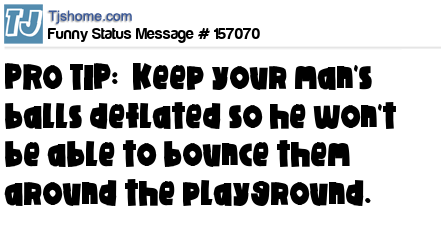 X says PRO TIP: Keep your man's balls deflated so he won't be able to bounce them around the playground.