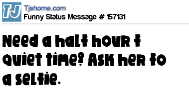 X says Need a half hour f quiet time? Ask her fo a selfie.