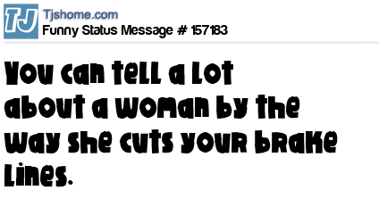 X says You can tell a lot about a woman by the way she cuts your brake lines.