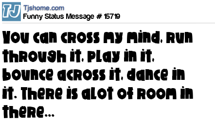 X  You can cross my mind, run through it, play in it, bounce across it, dance in it. There is alot of room in there...