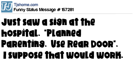 - # 157272 The other day I saw a sign at the hospital that said "Family Planning" use rear entrance and I thought to myself that's great advice...