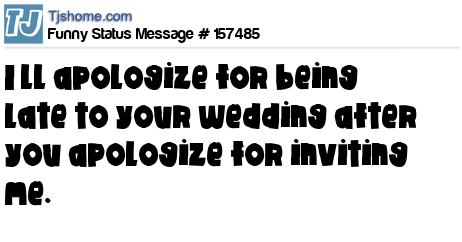X says I’ll apologize for being late to your wedding after you apologize for inviting me.