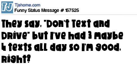 X says They say, "Don't Text and Drive" but I've had 3 maybe 4 texts all day so I'm good, right?