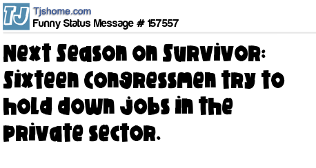 - # 163489 I think for next season's "Survivor" they should take 16 congressmen and make them get jobs in the private sector.