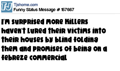 X says I'm surprised more killers haven't lured their victims into their houses by blind folding them and promises of being on a febreze commercial