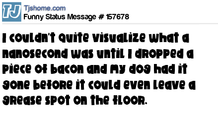 X says I couldn't quite visualize what a nanosecond was until I dropped a piece of bacon and my dog had it gone before it could even leave a grease spot on the floor.