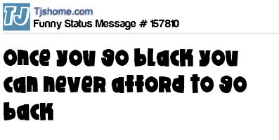 - # 79884 Once you go black you never go back..... Wait thats not right its...... Once you go black you want your test results back..... Or was it ... Once you go black your babys' on crack ... no no actually it was ... Once you go black you want your dignity back