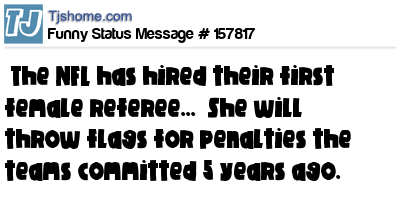 - # 157840 NFL has hired their first female referee... She will throw flags and not tell you what you did. "You know what you did"