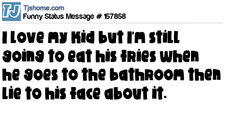 X says I love my kid but I'm still going to eat his fries when he goes to the bathroom then lie to his face about it.