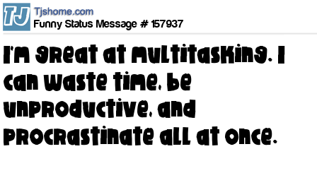 X I'm great at multitasking. I can waste time, be unproductive, and procrastinate all at once.