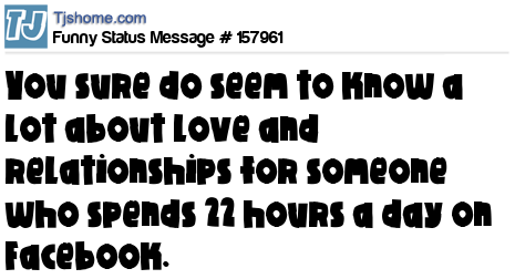 X says You sure do seem to know a lot about love and relationships for someone who spends 22 hours a day on Facebook.