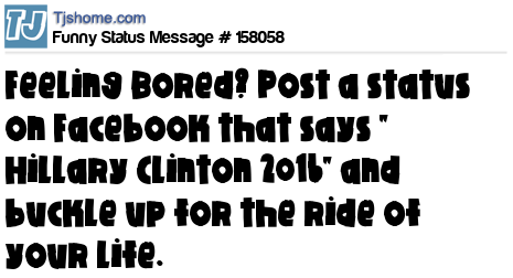 X says Feeling Bored? Post a status on Facebook that says " Hillary Clinton 2016" and buckle up for the ride of your life.