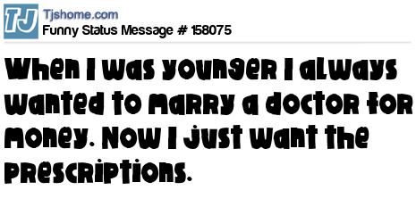 X says When I was younger I always wanted to marry a doctor for money. Now I just want the prescriptions.
