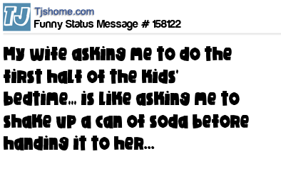 X My wife asking me to do the first half of the kids' bedtime,,, is like asking me to shake up a can of soda before handing it to her...