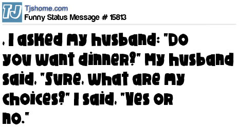 X , I asked my husband: "Do you want dinner?" My husband said, "Sure, what are my choices?" I said, "Yes or no."
