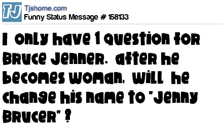X says i only have 1 question for Bruce Jenner. after he becomes woman, will he change his name to "Jenny Brucer" ?
