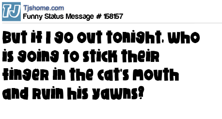 X says But if I go out tonight, who is going to stick their finger in the cat's mouth and ruin his yawns?