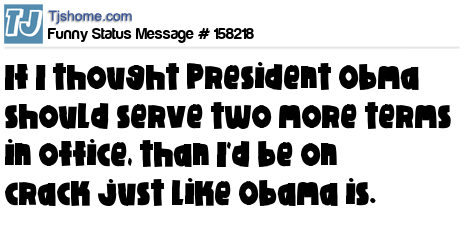 X says If I thought President Obma should serve two more terms in office, than I'd be on crack just like Obama is.