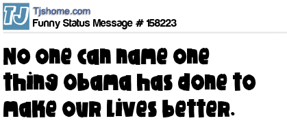 - # 158236 No one WANTS to name one thing Obama has done to make our lives better.