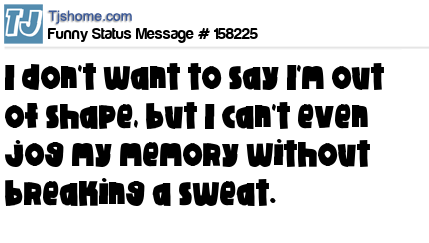 X says I don't want to say I'm out of shape, but I can't even jog my memory without breaking a sweat.
