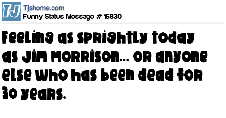 X is feeling as sprightly today as Jim Morrison... or anyone else who has been dead for 30 years.
