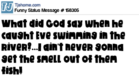 X says What did God say when he caught Eve swimming in the river?...I ain't never gonna get the smell out of them fish!